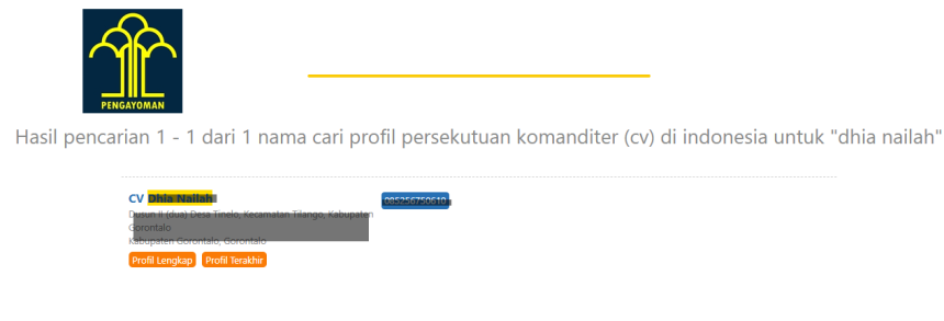 Jika Perusahaan CV anda telah terdaftar dan memiliki Nomor SKT Perusahaan dengan awalan kata (AHU .... ), maka hasil pencarian akan muncul.