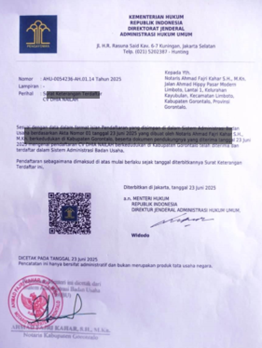 Tambahan : Dengan demikian, maka seharusnya perusahaan cv juga sudah terdaftar dan dapat ditemukan melalui fitur pencarian perusahaan di situs AHU online alamat : https://ahu.go.id/.